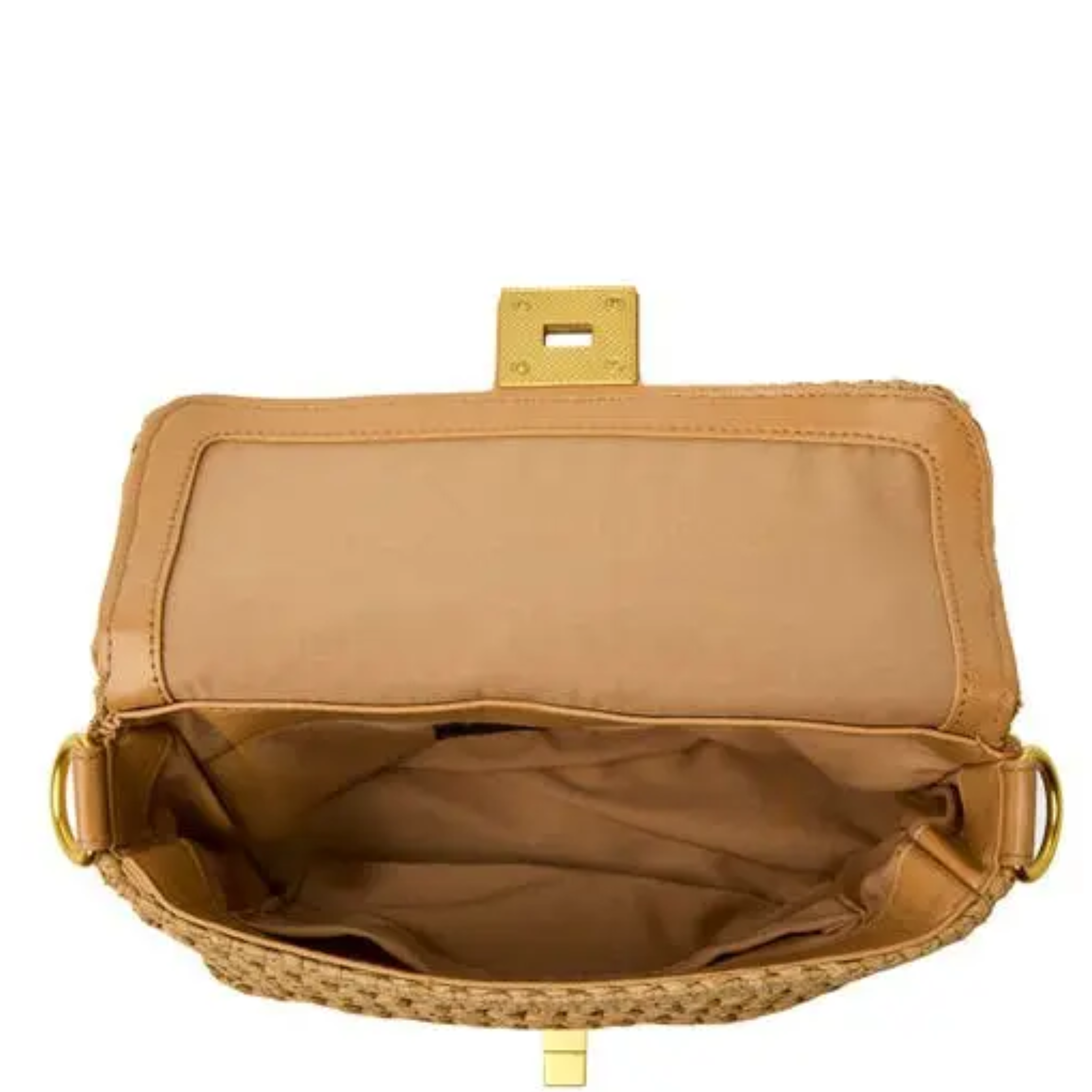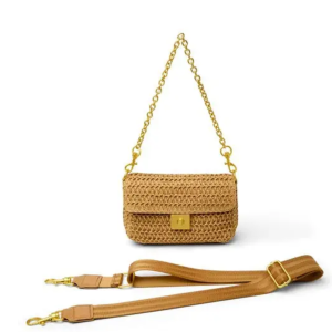 This raffia clutch from THINK ROYLN features both a chain strap and a durable webbing crossbody strap. It has a turnlock closure, an exterior slip pocket, and an interior slip wall pocket. The clutch is finished with canvas lining.